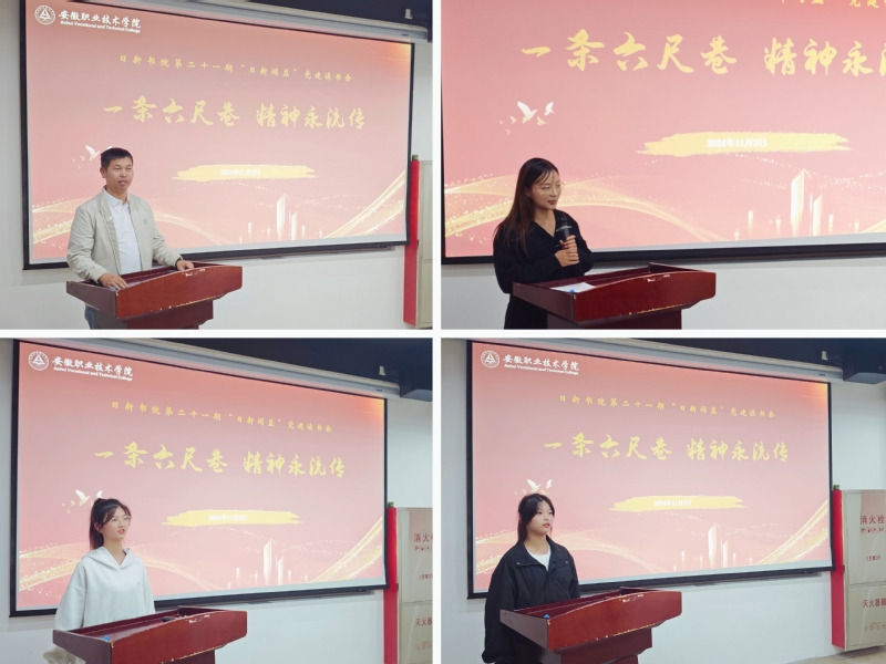 为深入学习贯彻习近平总书记在安徽考察时的重要讲话精神,进一步传承和弘扬六尺巷精神,11月3日,计算机与信息技术学院在“一站式”学生社区举办主题为“一条六尺巷 精神永流传”的日新书院第二十一期“日新阅益”党建读书会。计算机与信息技术学院电子通信学生党支部书记陈洋、智能制造学院辅导员彭琳琳、计算机与信息技术学院辅导员李银萍以及30余名学生参加,活动由日新党建工作站宣讲团曹薇主持。
