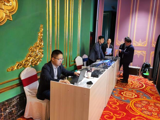 会前,中心对会议所需的各种设备多次进行检查和调试,确保LED大屏、音响、麦克风等设备运行正常,声音流畅,画面清晰。与科大讯飞技术人员多次沟通、调试会场同声传译需求,确保翻译内容准确展示。