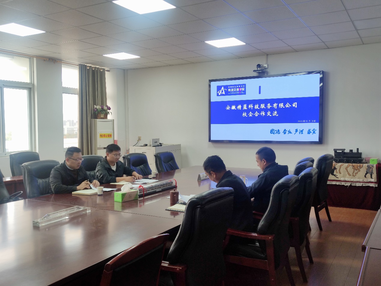 11月20日,安徽精蓝科技服务有限公司总经理龚环环一行到轨道交通学院开展校企合作交流,轨道交通学院院长张世军和副院长刘道前参加会议。
