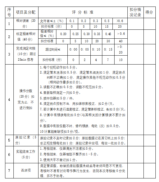 1.技能操作竞赛成绩分两步得出,现场部分由裁判员根据选手现场实际操作规范程度、操作质量、文明操作情况和现场分析结果,依据评分细则对每个单元单独评分后得出;分析结果准确性部分则等所有分析结果数据汇总并经专人按规范进行真值、差异性等取舍处理后得出。