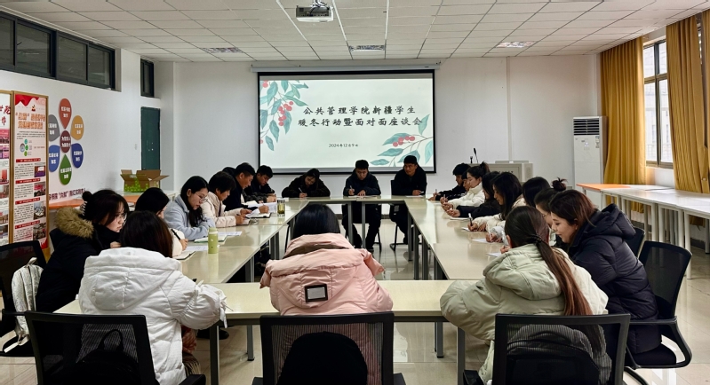 凛冬将至,为了让学院新疆籍学生感受到来自学院的关怀和温暖,12月9日下午,公共管理学院在红薪书院组织“暖冬行动”暨新疆籍学生座谈会。党总支书记王冬梅、院长张祎、团总支书记周安琪、辅导员李萌萌、张晓露与2023级、2024级新疆籍学生一起交流座谈。座谈会由周安琪主持。