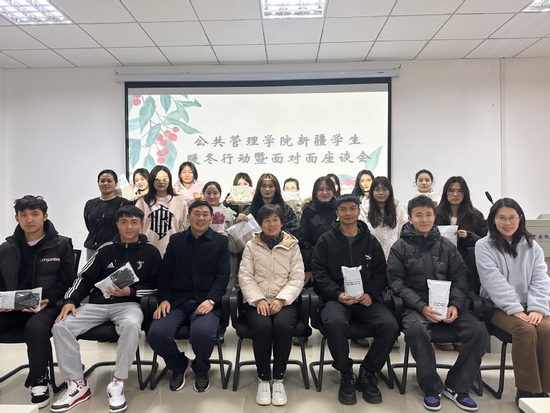 活动最后,学院为同学们送上爱心御寒物资,传递关怀与温暖。此次座谈会不仅为新疆籍学生提供了一个交流学习的平台,也进一步加强了民族团结和融合。公共管理学院始终高度重视铸牢中华民族共同体意识教育,不断提高民族学生教育管理水平,对新疆籍学生实施全方位的关心和关爱,努力提升学生综合能力与素质,引导学生积极服务社会、奉献社会。(文/周安琪 图/饶思域)