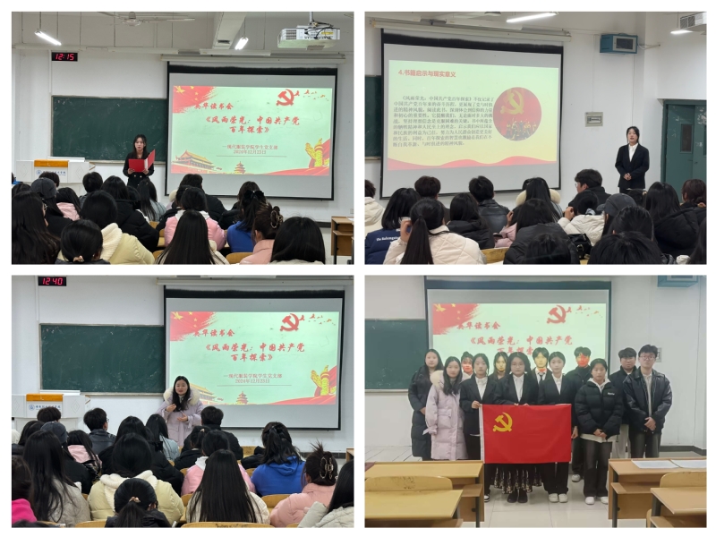 为认真学习贯彻习近平新时代中国特色社会主义思想,推动党史学习教育常态化长效化,12月23日,现代服装学院在明礼楼举办第十五期英华读书会读书分享活动,学院学生党支部党员、全体入党积极分子和各班团支书、思政委员参加活动。此次读书会围绕《风雨荣光:中国共产党百年探索》这本书展开研读。