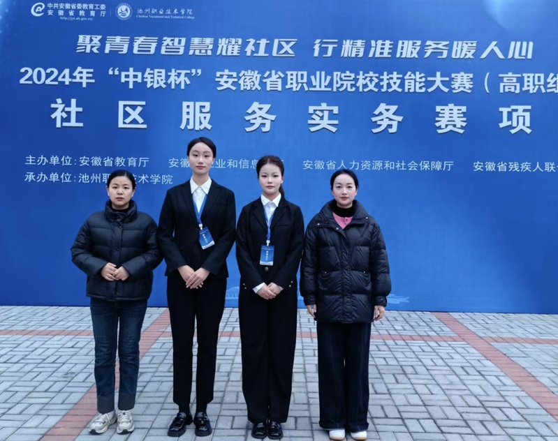 本网讯(公共管理学院)近日,2024年安徽省职业院校技能大赛(高职组)“社区服务实务”赛项落幕。我院公共管理学院杨茵、刘子晨同学分别荣获全省一等奖、二等奖。