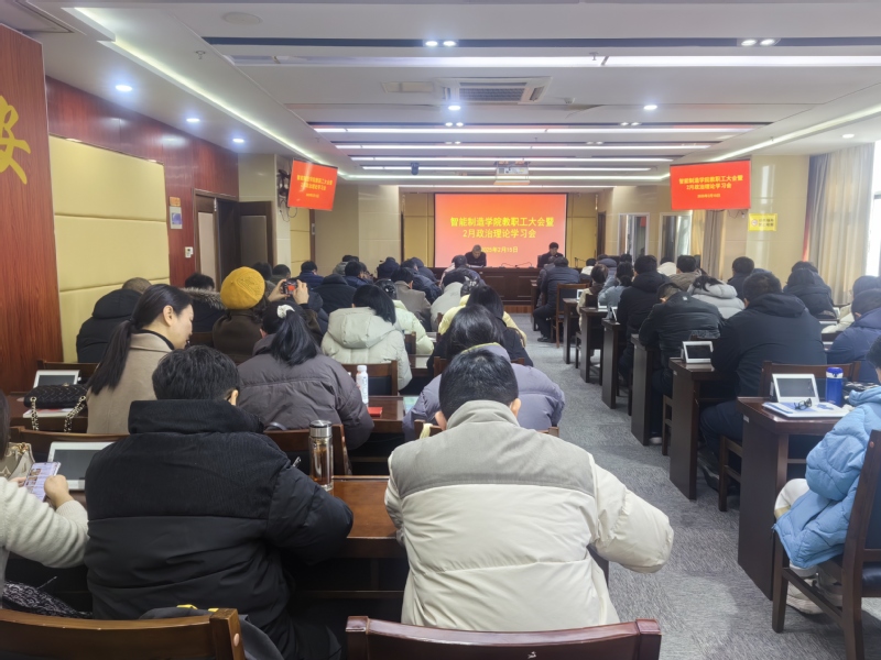为落实学校教职工大会暨“团结奋进年”动员会精神,推动学院2025年各项工作平稳、有序、高效开展,2月15日,智能制造学院在图文信息中心召开2025年春季学期教职工大会暨2月政治理论学习会,智能制造学院党总支书记章斌、院长桂树国出席会议,全体教职工参加会议,会议由章斌主持。