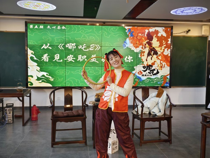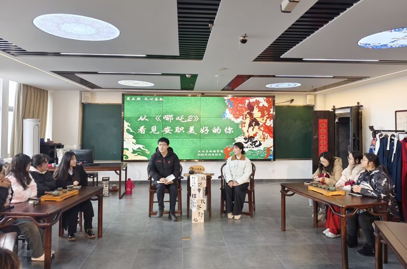 2月20日,文化与旅游学院在安徽文化实践教学基地成功举办了第五期“文心茶叙”活动。本期活动以“从《哪吒2》看见金宝搏188体育在线美好的你”为主题,特邀学院专职教师马明晖担任主讲嘉宾,与现场20余名师生共话文化自信、职业理想与人生价值,传递“美好”的力量。