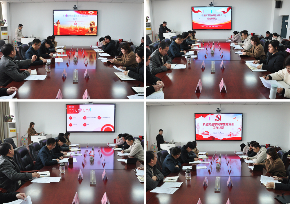会上,高速铁路施工与维护教师党支部书记唐娟、城市轨道交通运营管理教师党支部书记马晓丹、城市轨道车辆应用技术教师党支部书记董添、铁道工程技术党支部书记刘西锋、学生党支部书记汪勇等五位同志依次进行了现场述职,他们分别就2024年度的履职情况进行了总结汇报,深入剖析了存在的问题及其根源,并提出了针对性的改进措施和下一步的工作计划与打算。
