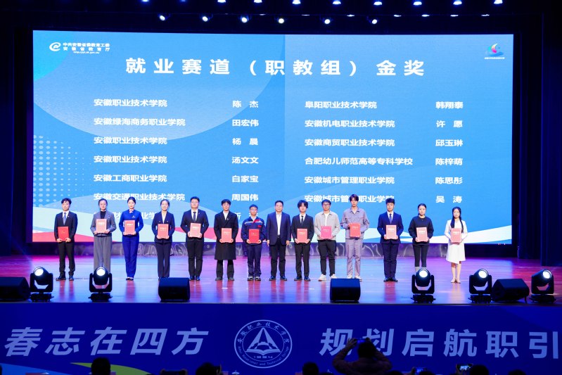 本网讯(就业与创新创业指导中心)3月3日下午,由安徽省委教育工委、安徽省教育厅主办的第十八届安徽省大学生职业规划大赛暨第二届全国大学生职业规划大赛(安徽赛区)决赛在我院圆满落幕。教育部学生服务与素质发展中心副主任方伟、安徽省委教育工委副书记范奇、共青团安徽省委副书记周宇、中国银行安徽省分行党委书记、行长王才先,安徽艺术学院党委书记韩军,院领导李方泽、盛鹏、胡辉平、宣岩松等出席颁奖典礼。经过激烈角逐,我院轨道交通学院杨凯荣获成长赛道(职教组)金奖,智能制造学院陈杰、计算机与信息技术学院杨晨、艺术与创意学院汤文文荣获就业赛道(职教组)金奖,学院蝉联最佳组织奖。