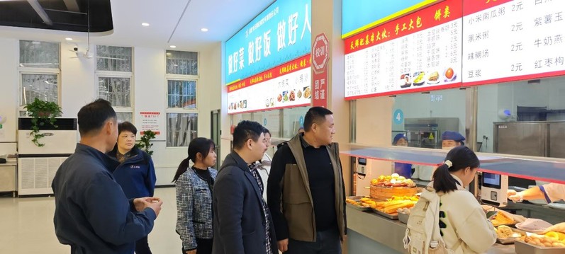 许兴旺对贺东英一行表示欢迎并简要介绍了学院后勤服务保障情况,重点介绍了近年来学院食品安全监管的特色做法与实践经验。他表示,学院历来高度重视校园食品安全工作,从源头治理上下功夫,在招标采购、进场把关、日常监管、制度建设等方面不断完善食品安全全链条监控体系,尽最大努力守护好师生“舌尖上安全”。