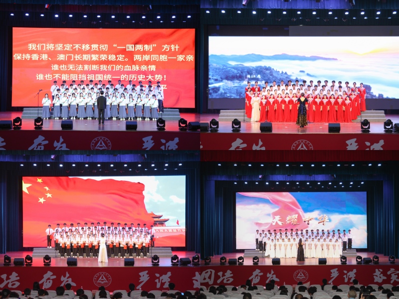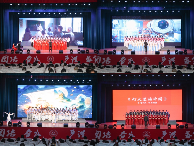 全校16个二级学院及中专部精心组织、踊跃参与,千余名师生通过合唱形式,深情演绎《有我》《灯火里的中国》等经典曲目,将党史教育与艺术实践深度融合。各参赛队伍以饱满的热情、创新的形式献上一场视听盛宴,《金宝搏188体育在线风华颂》讲述了1954纺训班初萌到勇攀职教新峰的波澜壮阔;《洪武正韵·战歌——玉盘》将传统民乐与现代编曲结合,激荡起全场师生的文化自信;《迎风飘扬的旗》指引了民族复兴的壮阔征程;《强军战歌》用青春旋律描绘出强国愿景。