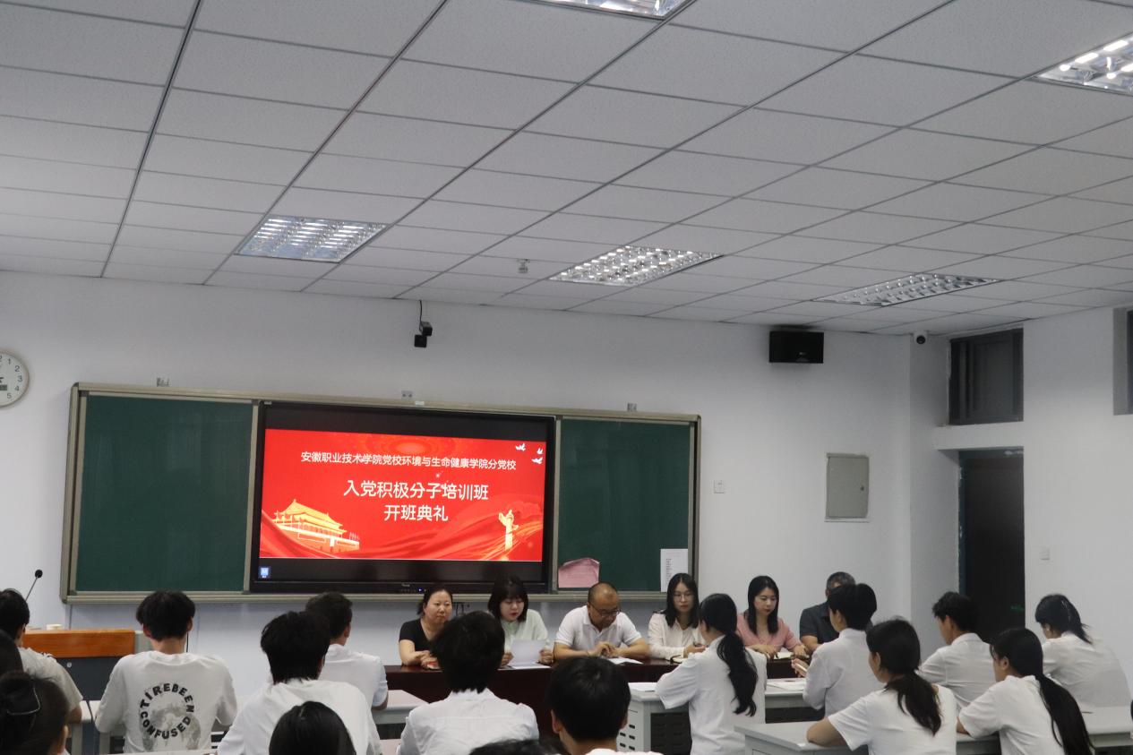 党旗领航,磐石筑基。为深入学习贯彻习近平新时代中国特色社会主义思想,落实全面从严治党新要求,严把党员发展“入口关”,深入学习党的理论知识、坚定理想信念的新征程。环境与生命健康学院第43期、44期入党积极分子培训班开班典礼在至精楼303室隆重举行。学院党总支书记郝建文、组织员周福静、食品药品学生党支部书记章婧婷、专职辅导员老师和30名入党积极分子参加会议,会议由章婧婷主持。