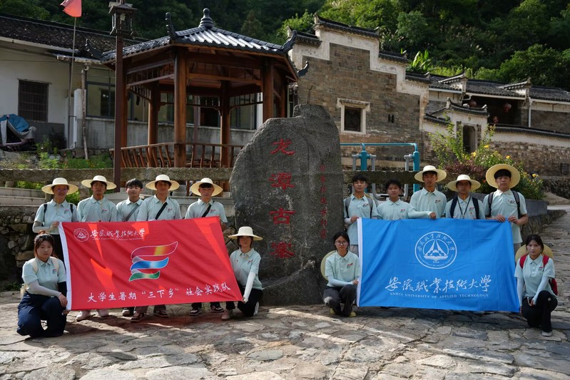 实践团的最后一站来到汤泉乡龙潭寨村。同学们漫步青石板路,参观古民居、古祠堂,感受徽派建筑的独特魅力;与当地村民深入交流,了解乡村旅游、特色产业发展带来的新变化。当地干部向大家介绍了龙潭寨村如何依托生态资源和文化底蕴,走出一条“文旅融合”的乡村振兴之路,让同学们深刻体会到“绿水青山就是金山银山”的发展理念。