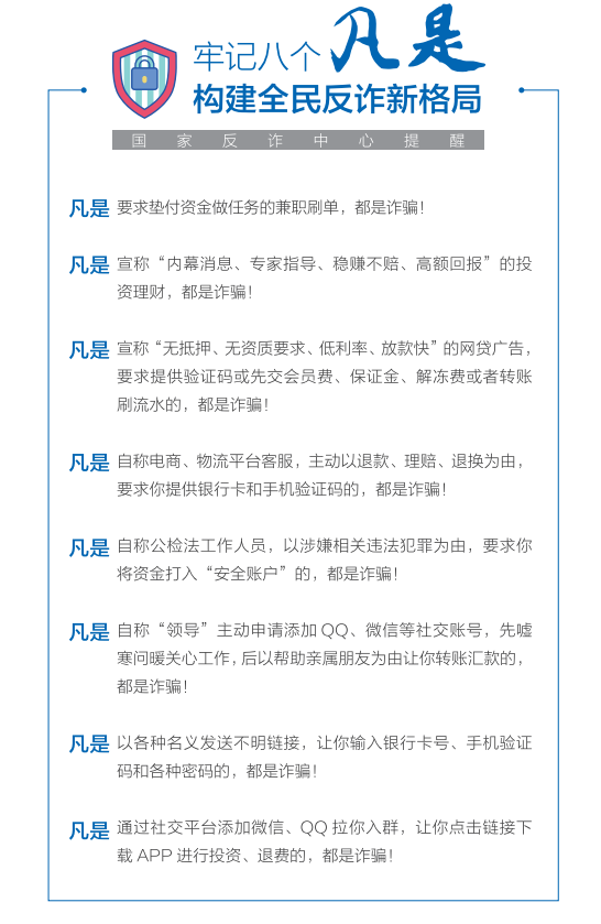 牢记“八个凡是” 构建全民反诈新格局