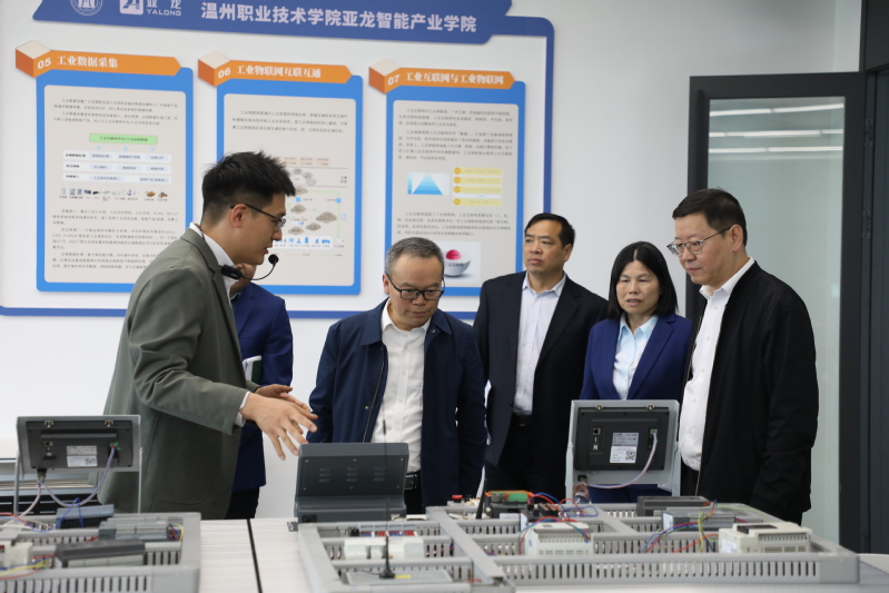 调研期间,盛鹏院长一行实地考察了温职院国家级和省级教育教学团队,全国高校黄大年式教师团队,科研创新团队,高水平专业群,以及产教融合实训基地,重点观摩了智能制造学院、人工智能学院、建筑工程学院等二级学院的特色专业群建设成果。