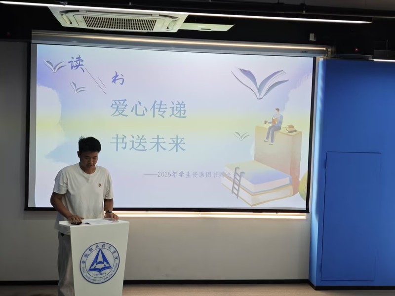 随后,四位学生代表——汽车工程学院黄灿、艺术与创意学院赵科桦、建筑工程学院卞士杰、马克思主义学院周锦尚依次分享了《我与地坛》《大卫·科波菲尔》《假如给我三天光明》《平凡的世界》四本书籍。他们结合自身经历,讲述书籍如何陪伴自己度过学习和生活中的困难,如何启发自己对人生的思考,如何激励自己追逐梦想。其中一位学生代表提到,受助学生应当以书中励志人物为镜:在逆境中保持善良,在受助时心怀感恩,在奋斗中传递希望。