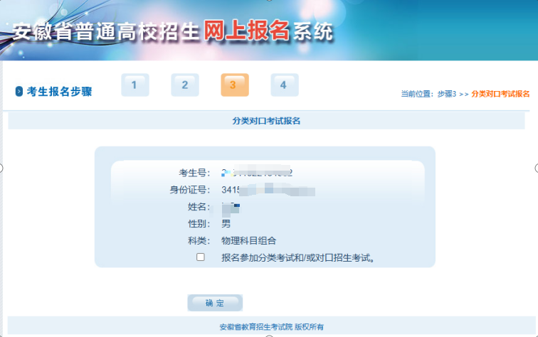 1.用浏览器访问gkbm.ahzsks.cn或通过安徽省教育招生考试院微信公众号访问(进入微信公众号,选择“招考服务”-“分类对口报名”)。